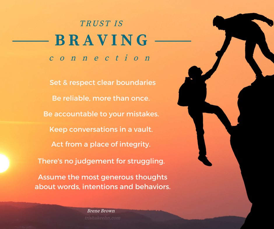Building trust is an important skill when creating a support network. According to Brene Brown, there are seven elements that compose trust: boundaries, reliability, accountability, vault, integrity, nonjudgment, & generosity. Check out this video that explains each of these elements more fully!